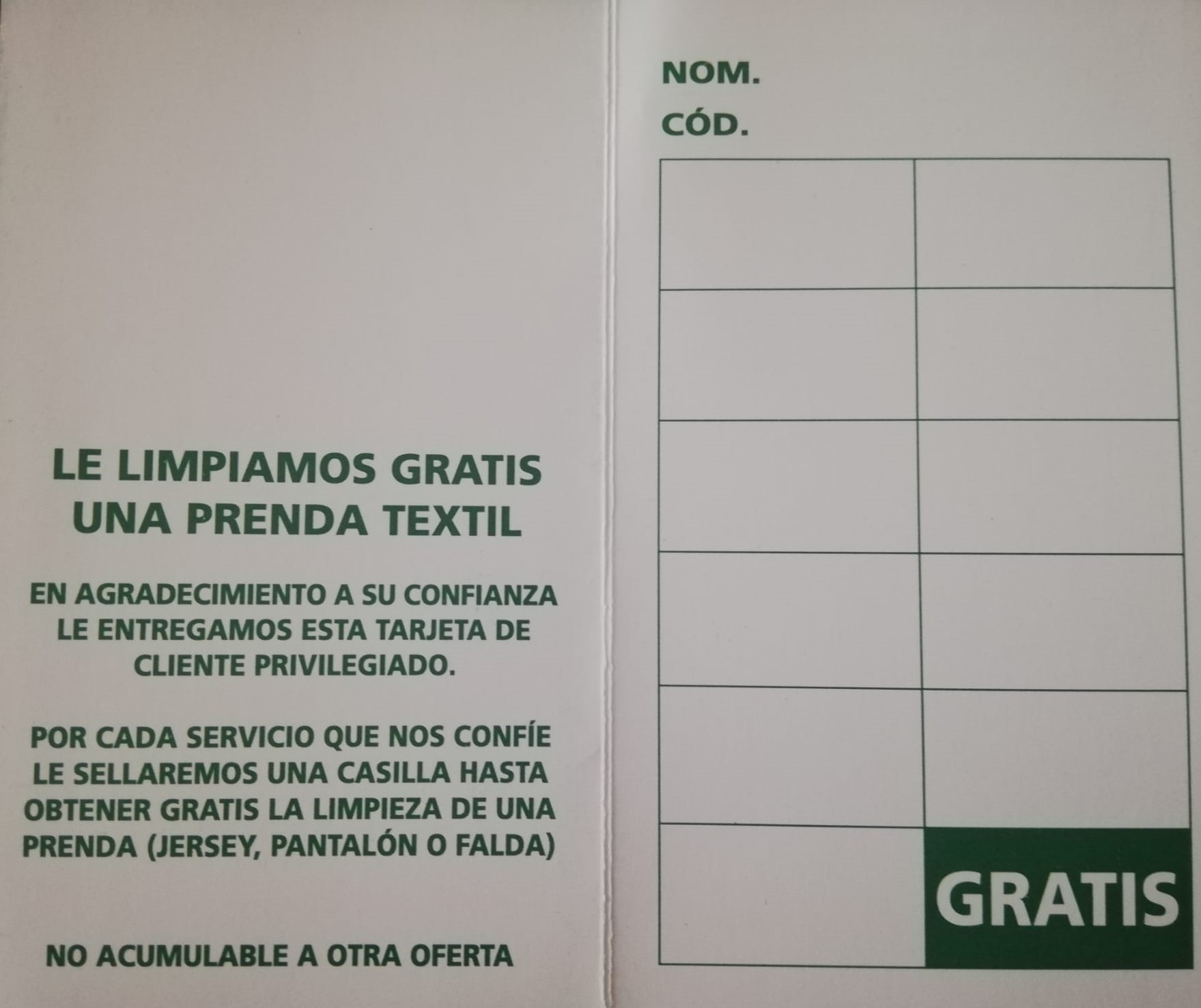 Y ADEMAS, DEL 1 DE ENERO AL 31 DE MARZO LA LIMPIEZA DE UNA PRENDA GRATIS COMPLETANDO LOS SELLOS DE NUESTRA TARJETA